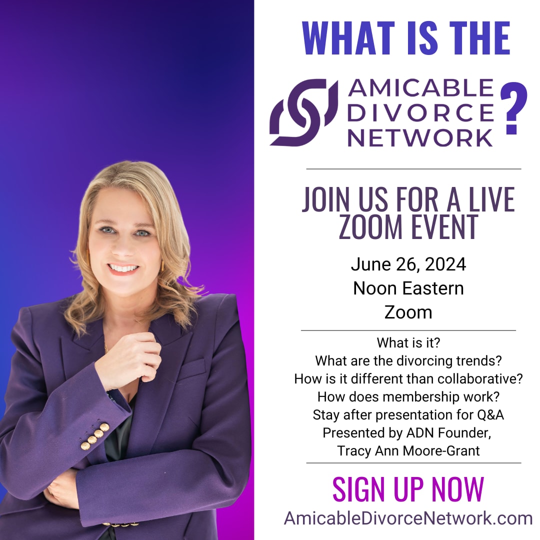 This presentation is for professionals who are interested in learning more about the Amicable Divorce Network. The presentation will cover our vetting process, who can be a member, membership levels, how Amicable Divorce compares to Collaborative Divorce, member benefits and more. This presentation is on Zoom at noon eastern time, 5:00 pm BST. There will be an opportunity for Q & A after the event.