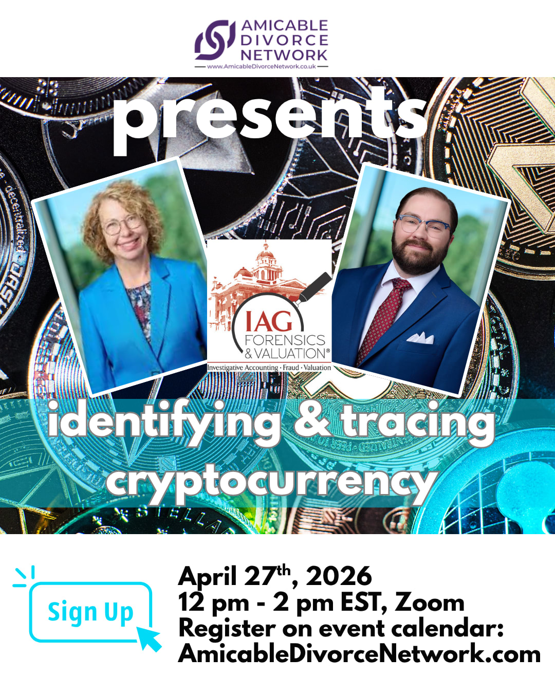 Cryptocurrency is becoming a standard asset seen in marital portfolios across the world. But even so, it is often overlooked or misunderstood. Join us for this online event hosted by global crypto experts from IAG Forensics and Valuation to learn how to find crypto assets and identify them in divorce. This workshop is two hours. You are encouraged to send questions, scenarios or case studies prior to the event to tracy@amicabledivorcenetwork.com