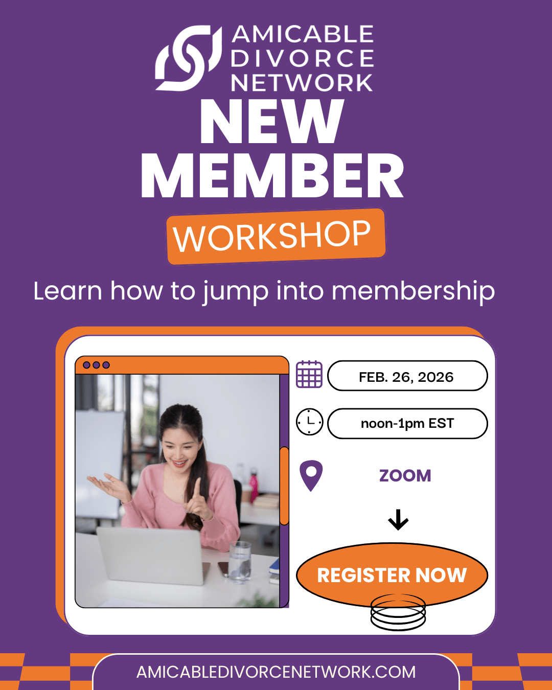 If you are a new member, or a member that has some questions, join us for our Amicable Divorce Network new member workshop on Zoom! Learn about building your profile, membership resources and member benefits.Images